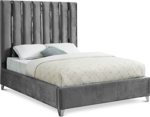 Create a bold yet welcoming sanctuary in your bedroom with this Enzo Bed. The channel design features velvet fabric upholstery for a sleek, glamoro...