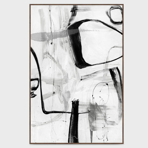 Sharp contrasts and fluid forms characterize Urban I Painting, capturing the pulse and texture of urban landscapes. Framed in a black floating fram...