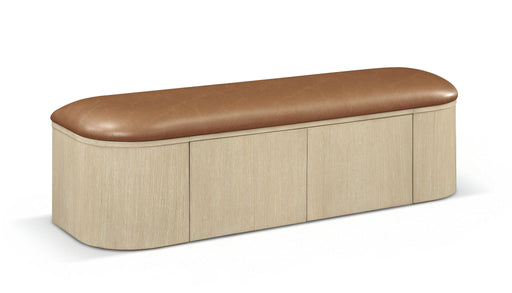 Velden - Upholstered Storage Bench With Stained Natural Base Velden - Vegan Leather Upholstered Storage Bench - Cognac / Stained Natural60.0"W x 18...