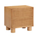 The Miles Natural Wood Nightstand delivers a harmonious blend of sculptured Memphis forms and organic natural finishes, presenting a sophisticated addition to your bedroom. This handcrafted nightstand showcases solid wood cross-hatch patterns on the door fronts, balanced against a clean exterior form, making it a versatile piece that seamlessly fits into any space, emphasizing natural materials. Its clean and smooth push-to-open hardware brings a high-end feel, offering flexibility and enhancing the overall aesthetic of your space without the stress of matching metal finishes.