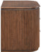 Texture takes the lead with the Astrid solid wood and oak veneer nightstand. Wrapped in sleek fluted wood and finished in a deep, moody tone, this contemporary design is both bold and refined. Whether styled in a bedroom or living space, it delivers effortless storage with standout style.