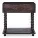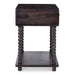 Made from mango wood, the Tabitha nightstand showcases exquisite craftsmanship with its delicately turned legs, highlighted by tight, intricate spirals. Accented with a sleek black iron handle, this piece not only provides traditional elegance but also functional design with a lower shelf for added storage.