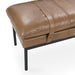 This top grain leather bench combines modern style with everyday function. Featuring a plush leather cushion secured with detailed strap accents and a sturdy black iron base, it adds warmth and structure to any space. Ideal for entryways, bedrooms, or living rooms, this leather and iron bench offers versatile seating with a sleek, industrial touch. A perfect piece for modern, rustic, or urban interiors seeking comfort and refined design.