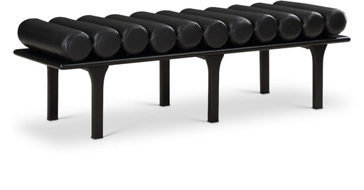 A bold and modern statement piece is the Atticus vegan leather upholstered bench that will elevate any room. Its unique, segmented design adds visu...