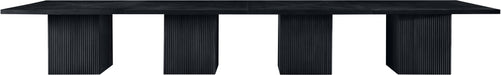 Even the smallest, most intimate dinner feels like an event when you're seated at this Belinda black modular dining table. Crafted with a solid wood base and a black finish oak wood veneer MDF top, its square top with fluted base exudes contemporary charm. The table top's thickness and natural wood grain variations add unique character, ensuring each piece is one-of-a-kind. Modular to create infinite configurations, it blends functionality with style for memorable dining experiences in any space.