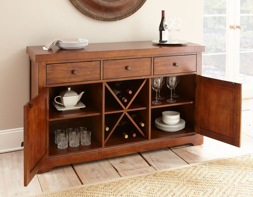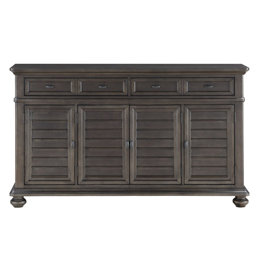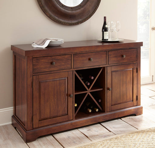 Modern farmhouse styling lends a touch of sophistication to the casual comfort of Cayla dining. The server features 2 doors, 2 drawers, and adjusta...