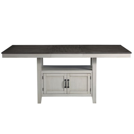 Relaxed, transitional styling in a neutral two-tone milk and finish are the hallmarks of the comfortable Hyland Counter Dining Set. A Storage Count...