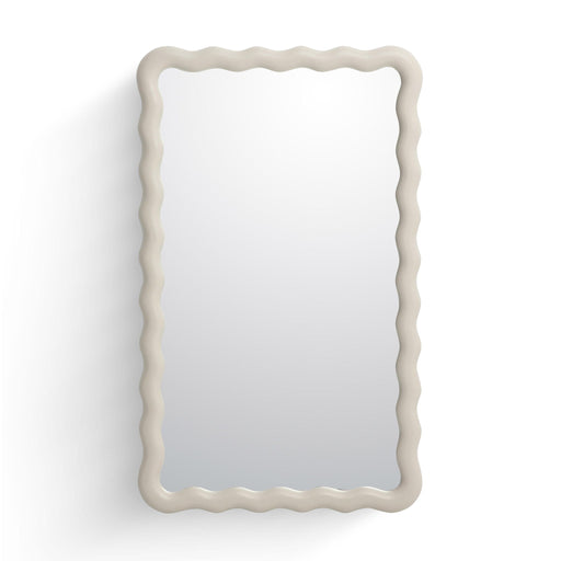 Make waves in any room with the Faire Cream Squiggle Mirror. Its sculptural, matte-finished frame and playful wavy border bring just the right amou...