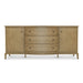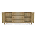 The Sadie sideboard's gentle curves and wire-brushed oak finish embrace modern traditionalism. The artfully designed overhang with rounded edges and curved front offers a soothing visual rhythm. Three middle drawers provide ample storage, while two holes for media cables allow practical organization.