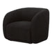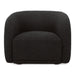 Constructed from solid beech and plywood, the Faye accent chair's unique curved back and firm, fixed bench seat rest on petite, rounded rubberwood legs. The exaggerated boucle fabric has a robust 100,000 rub count bringing depth and an art deco feel to its contemporary form--a touch of elegance to expansive living.