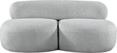 Discover timeless beauty with this Venti boucle fabric living room loveseat that's designed to elevate your interior space. This exceptionally crafted art-deco-inspired chair is part of the Venti collection and boasts an alluring curved shape to add elegance and refinement to your room. Upholstered in rich boucle fabric, the loveseat has a plush texture that's oh-so-cozy against the skin. The art deco styling makes it a real statement piece, whether you place it in your living room, home office, or your favorite reading nook.