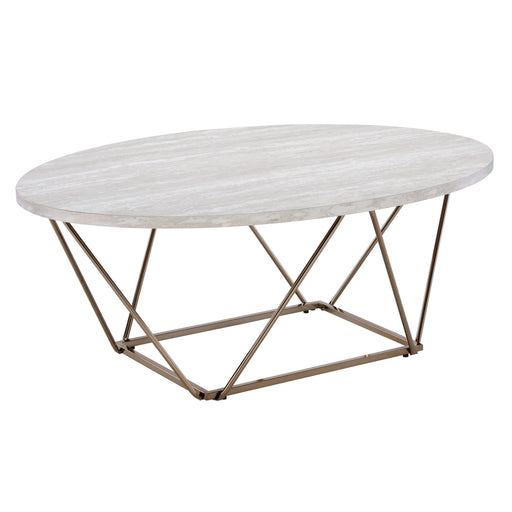 A mixed media table collection with a clean contemporary style, Zurich features a knife-edge faux marble top with an asymmetrical metal base that i...