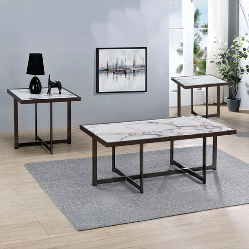 Sleek sophistication defines the Kayley 3-Piece Table Set, featuring a cocktail table and two end tables. Each piece showcases a stunning sintered ...