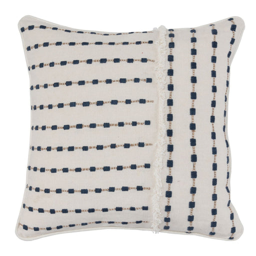 Breathe a fresh, organic feel into a space with this charming pillow. Appliques and embroidery of jute and cotton stripe a background of heavily wo...
