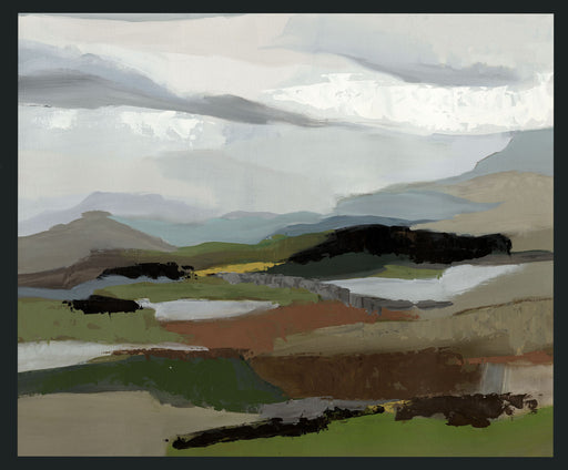 Buddy Whitlock’s painting captures the serenity of rolling landscapes with soft, layered greens and earthy tones under a moody sky. Encased in a th...